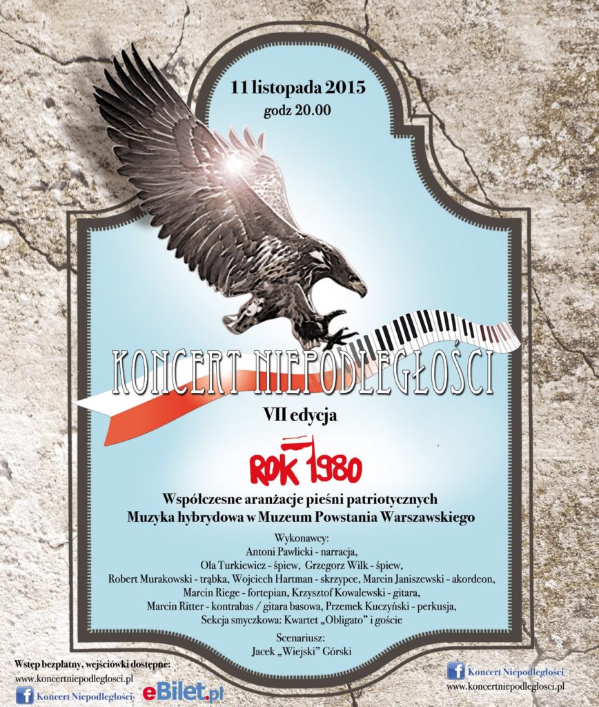 Inspiracją tytułu VIII Koncertu Niepodległości, który odbędzie się, po raz ósmy, 11 listopada 2016 r. w Muzeum Powstania Warszawskiego są słowa piosenki „Obława” Jacka Kaczmarskiego, a tematem przewodnim edycji działalność młodzieży walczącej o Niepodległość ukazane na przestrzeni kilku wieków Rzeczypospolitej. Wstęp na wydarzenie jest bezpłatny.