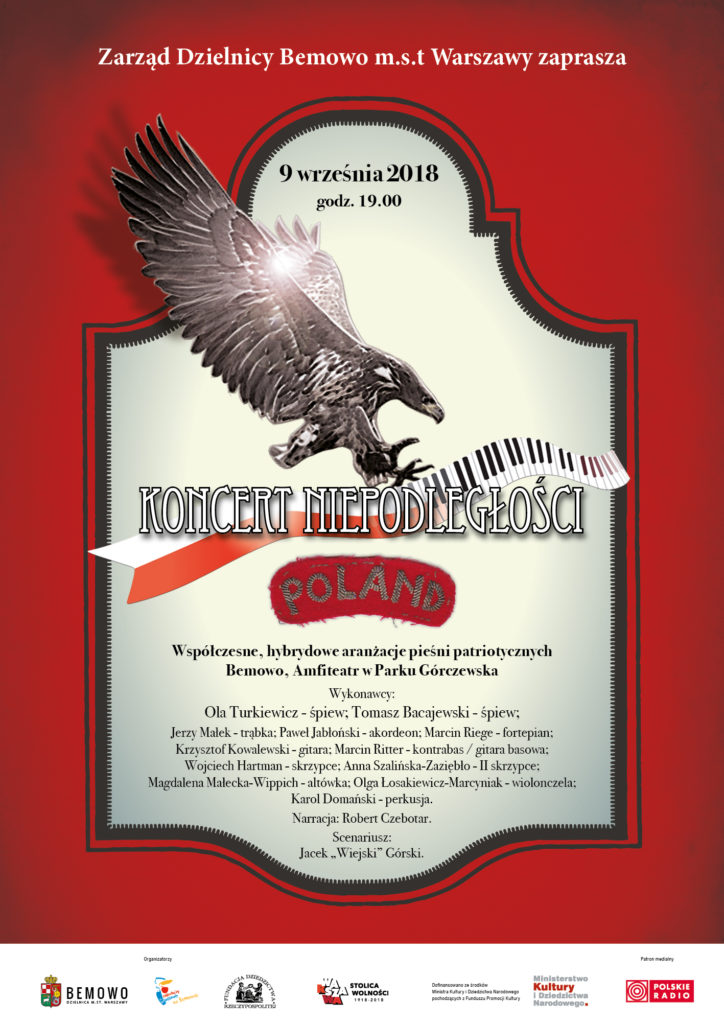 Tematem koncertu będzie walka Polaków pod obcymi sztandarami, zarówno o niepodległość Polski jak i innych narodów. Specjalna, warszawska edycja Koncertu Niepodległości „Poland” została zadedykowana patronowi dzielnicy Warszawa – Bemowo, generałowi Józefowi Bemowi. Wydarzenie odbędzie się w amfiteatrze w Parku Górczewska w dniu 9 września 2018.