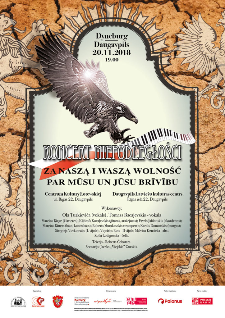 Dedykowana Polakom mieszkającym poza granicami kraju oraz Polonii edycja Koncertu Niepodległości opowiadająca dzieje Polaków walczących o wolność innych narodów ze szczególnym uwzględnieniem wspólnoty narodów od czasu przyłączenia Inflant do Polski, aż po wspólne walki z bolszewikami o Dyneburg i Łatgalię w 1920 roku. Koncert odbędzie się 20 listopada w Dyneburgu.