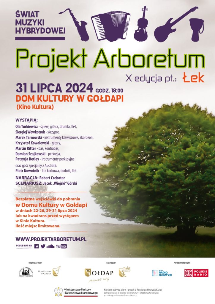 Jubileuszowy, X Projekt Arboretum „Łek”, to kolejna premiera autorskiego koncertu muzyki hybrydowej, inspirowanego muzyką tradycyjną oraz dziedzictwem kulturowym obszarów wiejskich dawnej Rzeczypospolitej. Projekt Arboretum dedykowany jest pieśni, kulturze i tradycji Ełku (dawniej zwanego m.in. Łekiem) oraz całej Ziemi Ełckiej współcześnie zaliczanych do Mazur Garbatych. Projekt ponownie realizowany jest w Gołdapi we współpracy z Gołdapskim Domem…